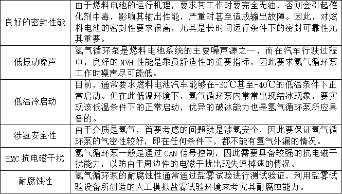 表:氫氣循環(huán)泵的基本要求 來源:網(wǎng)絡(luò)