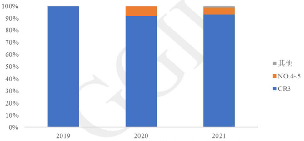 2019-2021年氫循環(huán)部件市場集中度 數(shù)據(jù)來源:高工產(chǎn)研氫電研究所(GGII)