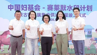 中國(guó)婦女發(fā)展基金會(huì)、鑲黃旗政府、錫林郭勒盟婦聯(lián)、鑲黃旗牧民、賽萊默公司及其合作伙伴代表等共同見證中國(guó)婦女發(fā)展基金會(huì)-賽萊默水印計(jì)劃首個(gè)集中供水工程竣工儀式